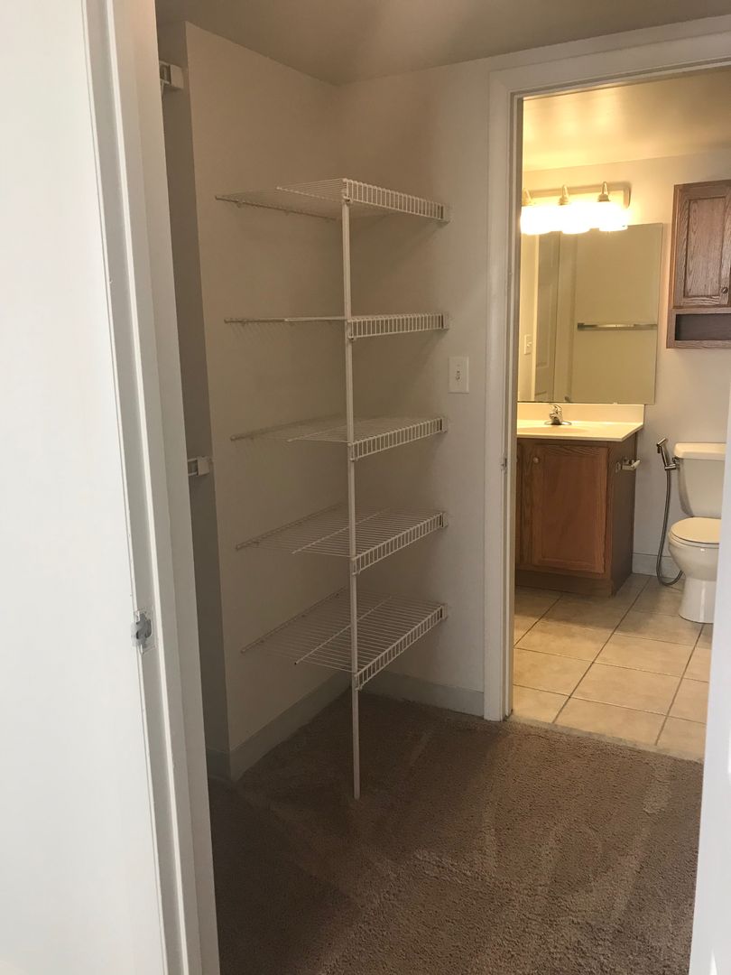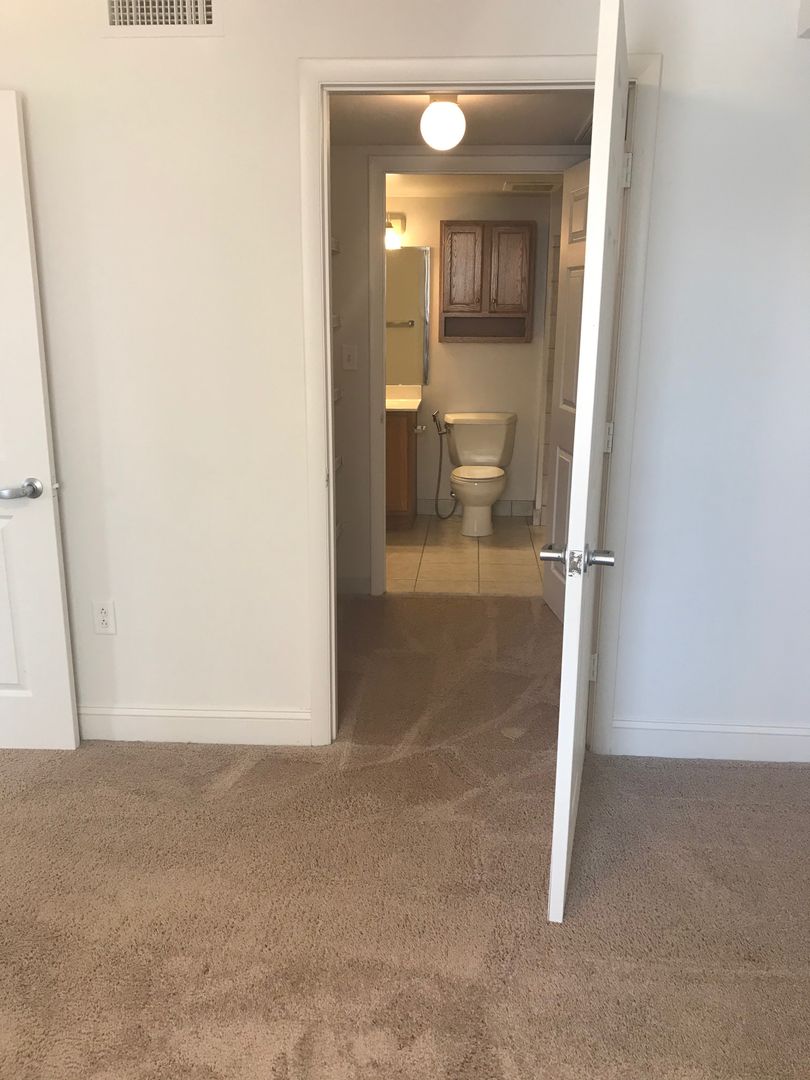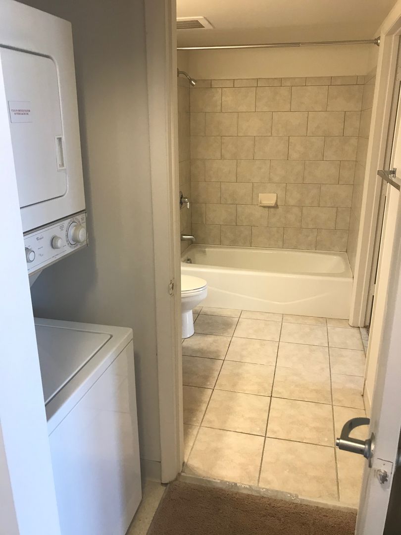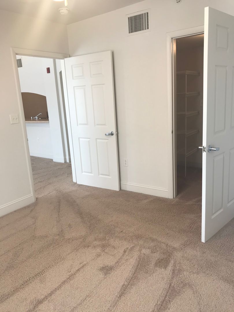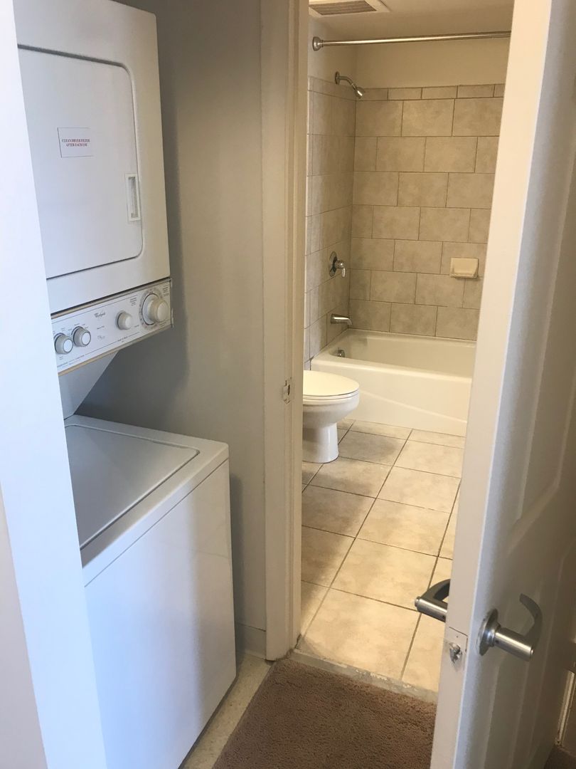 This luxury one bedroom apartment is fully carpeted with ceramic tile in the kitchen and bathroom. Nice walk in closet. This unit offers a beautiful view of downtown Richmond. The kitchen comes equipped with a dishwasher, garbage disposer, microwave, bisque stove and refrigerator with ice maker, lots of cabinets and counter space and a washer/dryer. There is a pass through kitchen with a bar that separates it from the living room and ample space for bar stools. The living room and bedroom have ceiling fans.