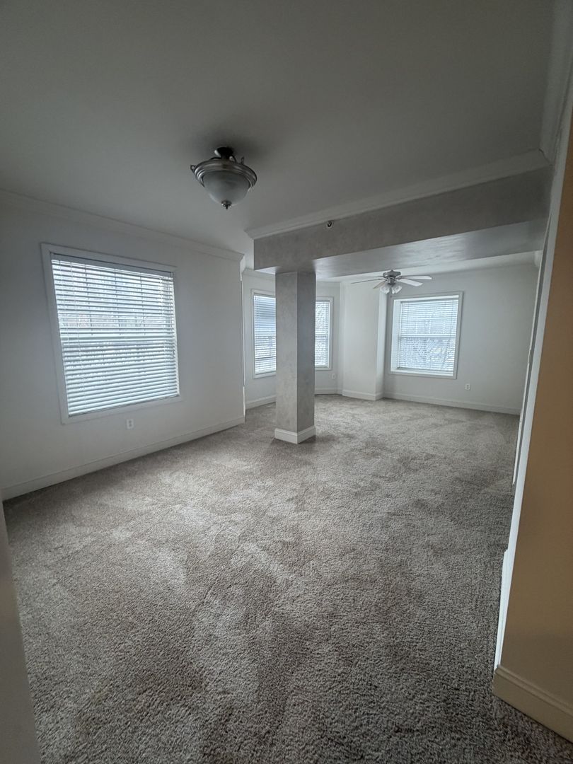This is luxury at its best. The apartment is fully carpeted with ceramic tile in the bathrooms and kitchen. This large two bedroom , two bath offers amazing views from everywhere in the apartment from the relaxing court yard to Monroe Park located across Belvidere St. The kitchen has granite countertops with stainless steel appliances and is equipped with a dishwasher, garbage disposer, microwave, flat top stove, refrigerator with ice maker and lots of cabinets and counter space. Washer/dryer is located right off the kitchen. Both bedrooms are large. One of the bathrooms has a large soaking tub, separate stand up shower along with a double sink vanity. The dining area and living room have lots of natural sunlight. The second bedroom is a great size with a large built in window seat in the bay window and a huge walk in closet. The bedrooms and living room have ceiling fans.