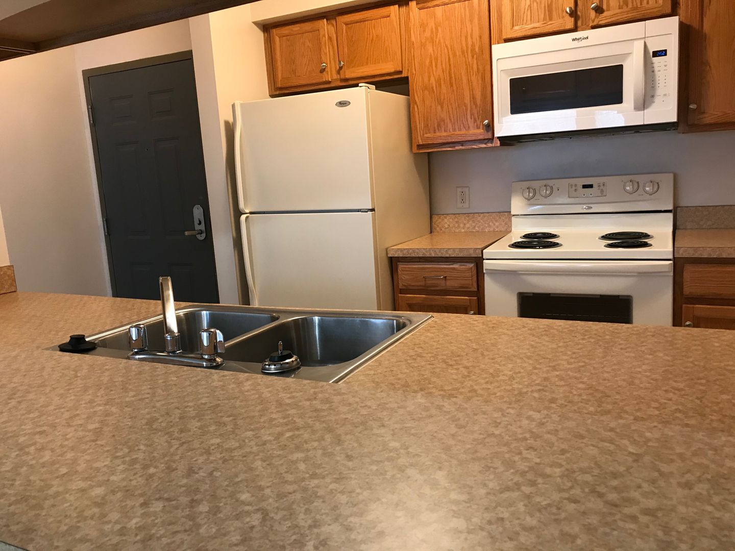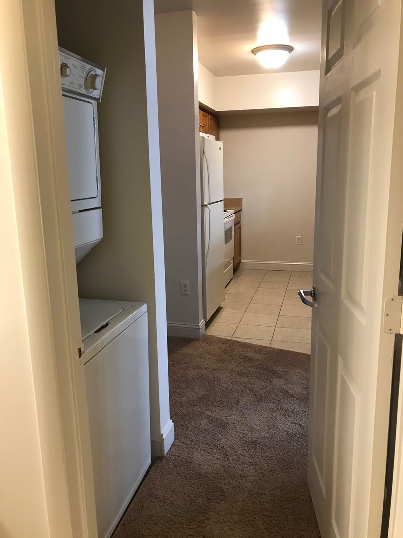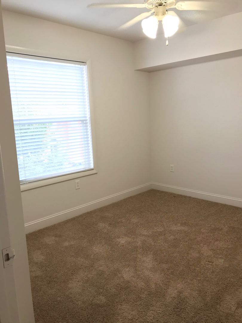 This luxury one bedroom apartment is fully carpeted with ceramic tile in the kitchen and bathroom. The unit faces W. Franklin St. The kitchen comes equipped with a dishwasher, garbage disposer, microwave, bisque stove and refrigerator with ice maker, lots of cabinets and counter space and a washer/dryer. There is a pass through kitchen with a bar that separates it from the living room. The living room and bedroom have ceiling fans.