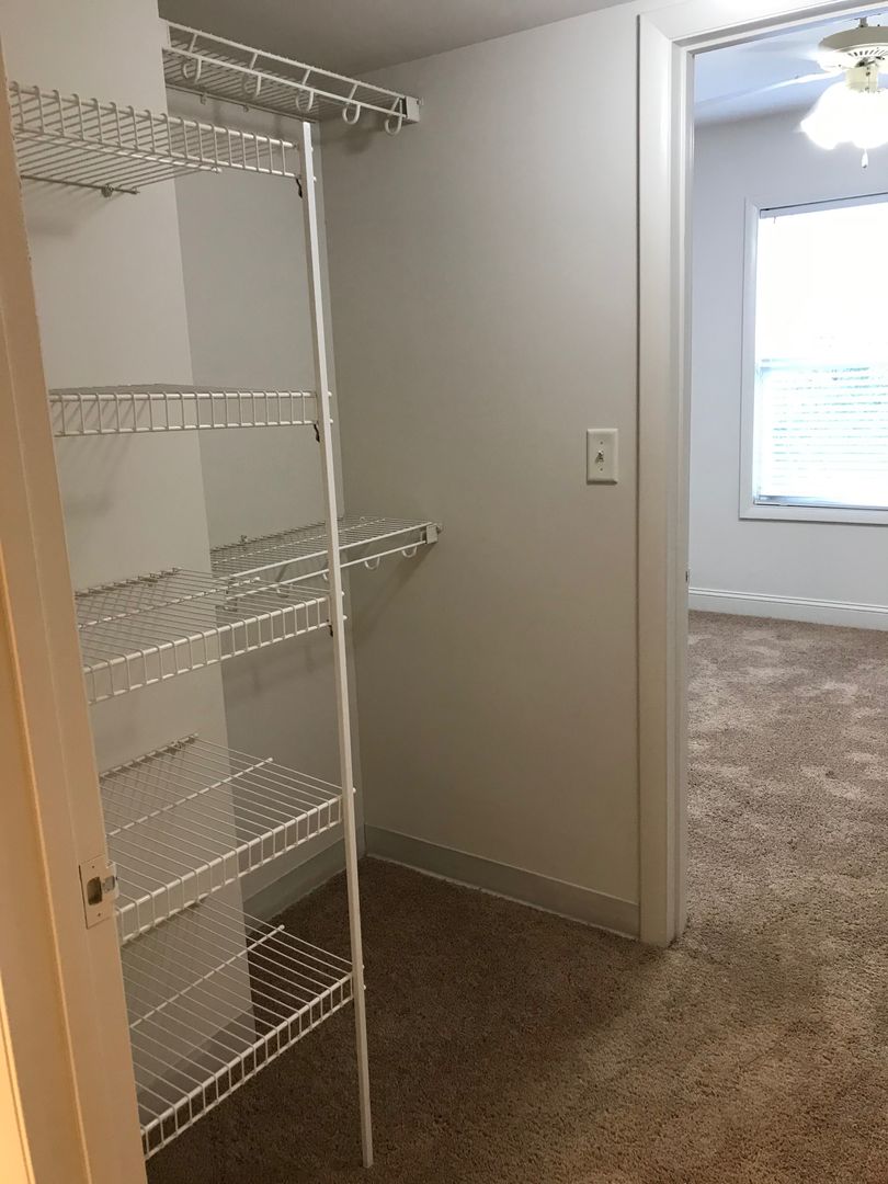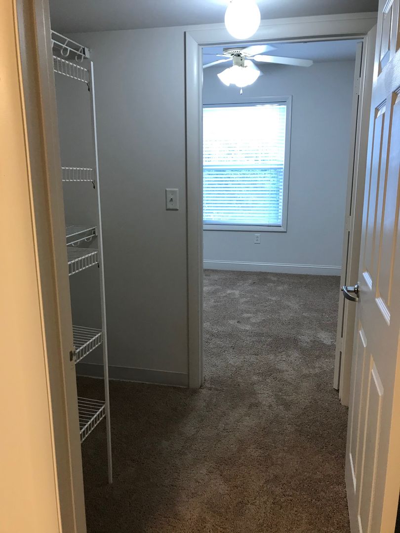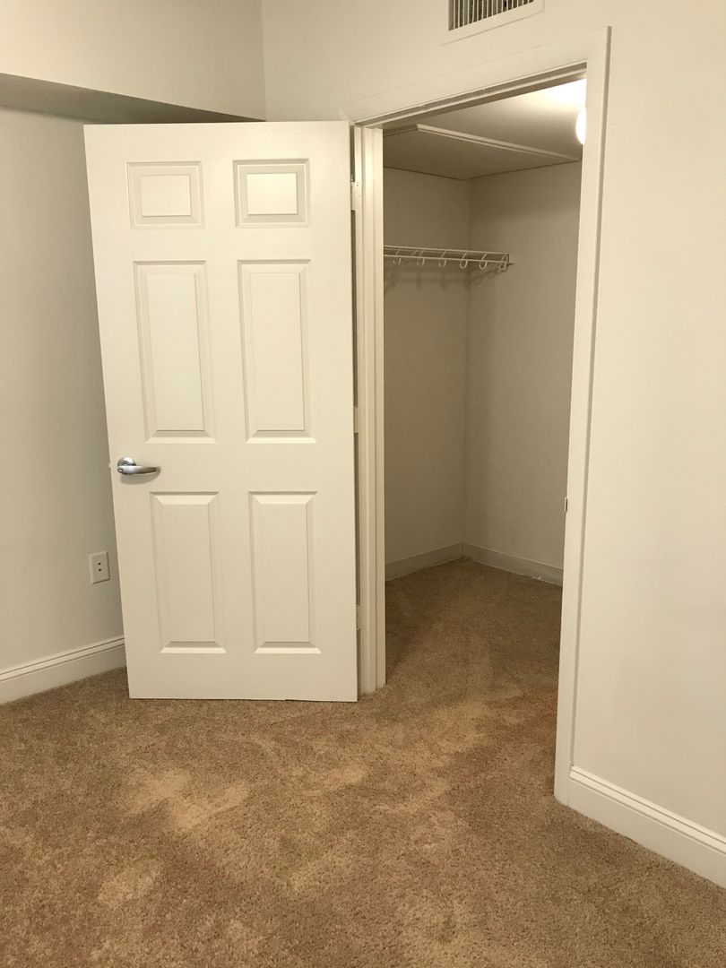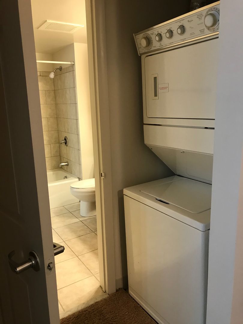 This luxury one bedroom apartment is fully carpeted with ceramic tile in the kitchen and bathroom. The unit faces W. Franklin St. The kitchen comes equipped with a dishwasher, garbage disposer, microwave, bisque stove and refrigerator with ice maker, lots of cabinets and counter space and a washer/dryer. There is a pass through kitchen with a bar that separates it from the living room. The living room and bedroom have ceiling fans.