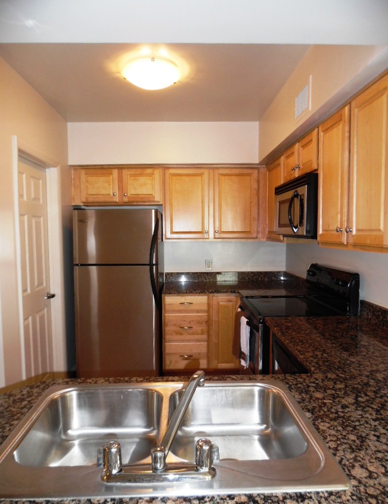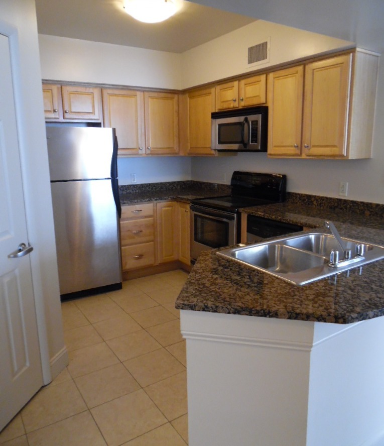 This is luxury at its best. The apartment is fully carpeted with ceramic tile in the bathrooms and kitchen. This large two bedroom, two bath offers an amazing views of the city. The kitchen has granite countertops with stainless steel appliances and is equipped with a dishwasher, garbage disposer, microwave, flat top stove, refrigerator with ice maker and lots of cabinets and counter space. Washer/dryer is located right off the kitchen. Both bedrooms are large. One of the bathrooms has a large soaking tub, separate stand up shower along with a double sink vanity. The second bedroom is a great size with a huge walk in closet. The bedrooms and living room have ceiling fans.